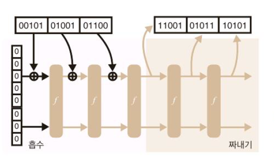 - 입력 데이터를 r비트 단위로 쪼개서 내부 상태에 XOR