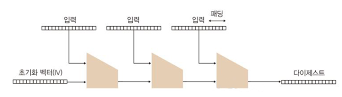 - MD5, SHA-1, SHA-2 등이 이 구조를 따름
