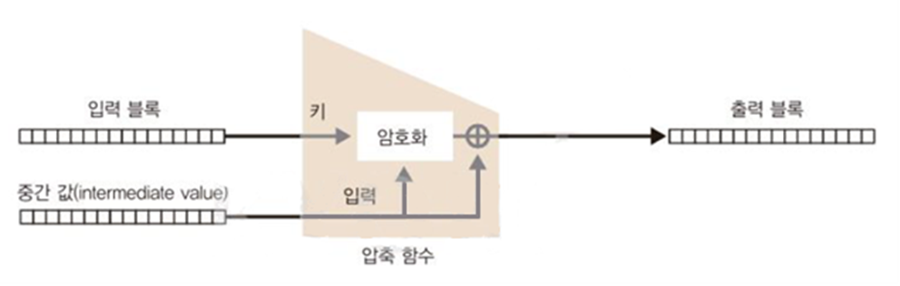 머클-담고르 구조에서 사용되는 압축 함수의 대표적인 구현 방식입니다.